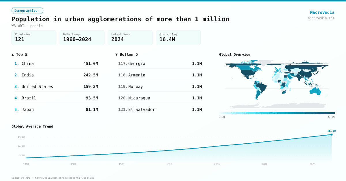 DemographicsWB WDIwb_wdi:EN.URB.MCTY•people•1960 → 2024•121 countries