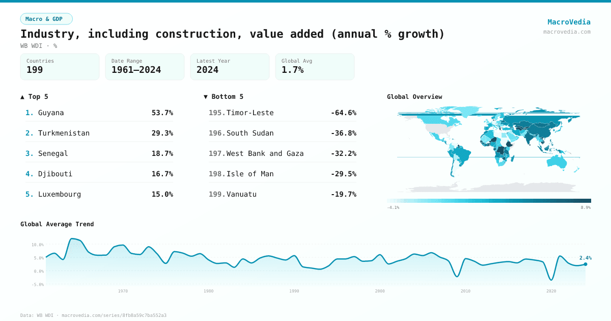 Macro & GDPWB WDIwb_wdi:NV.IND.TOTL.KD.ZG•%•1961 → 2024•199 countries