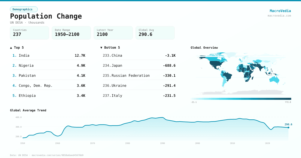 DemographicsUN DESAun_desa_pop:PopChange•thousands•1950 → 2026•225 countries