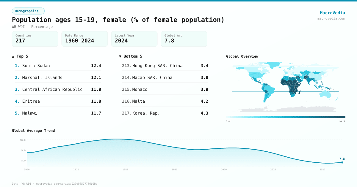 DemographicsWB WDIwb_wdi:SP.POP.1519.FE.5Y•Percentage•1960 → 2024•217 countries