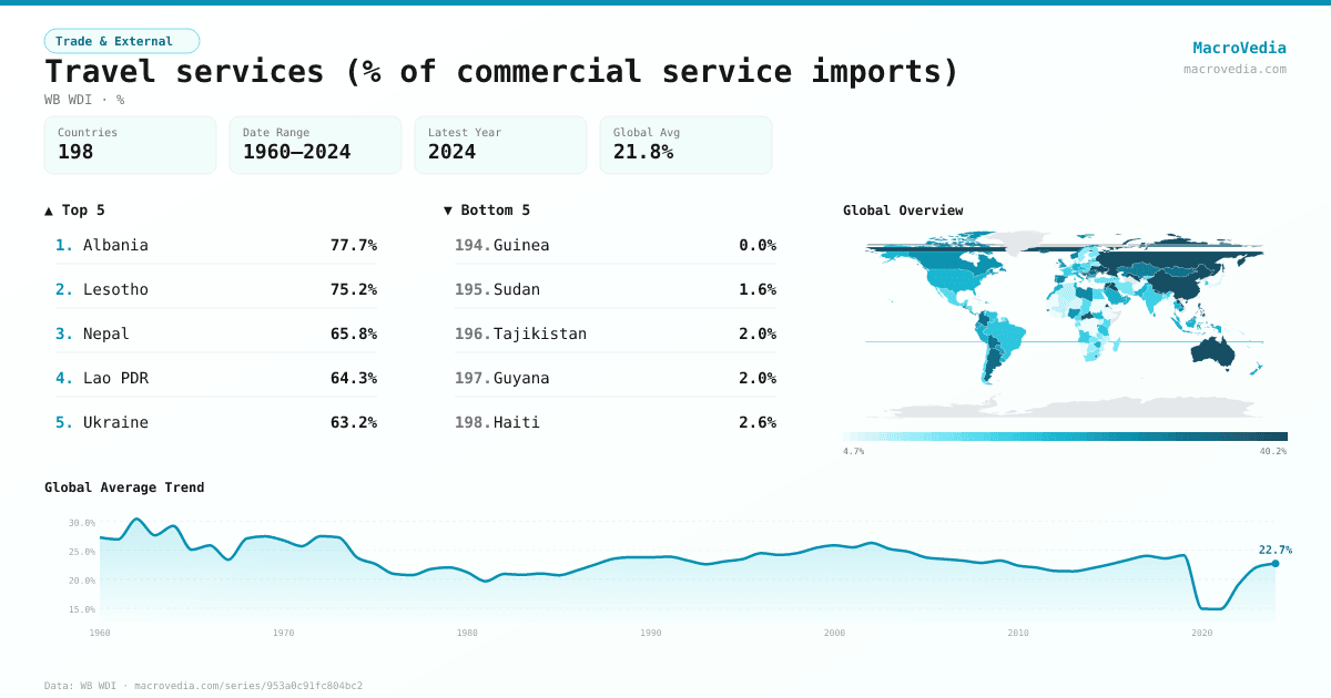 Trade & ExternalWB WDIwb_wdi:TM.VAL.TRVL.ZS.WT•%•1960 → 2024•198 countries