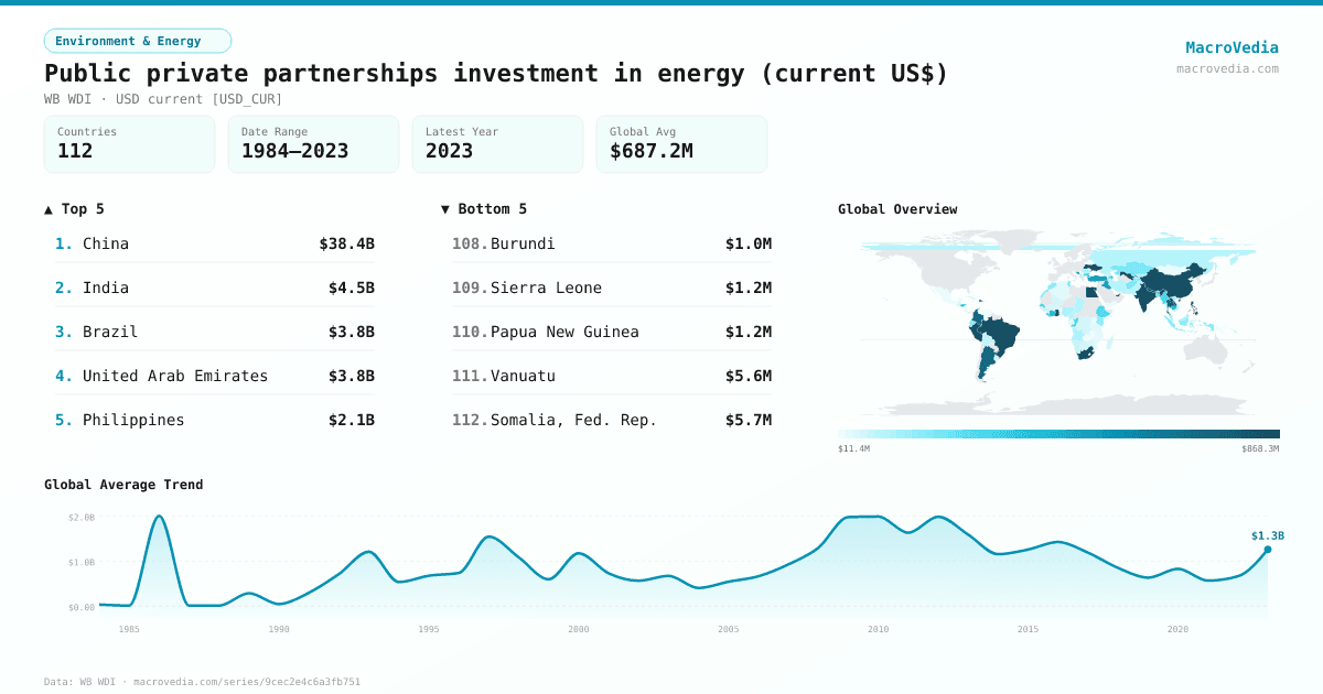 Environment & EnergyWB WDIwb_wdi:IE.PPN.ENGY.CD•USD current [USD_CUR]•1984 → 2023•112 countries