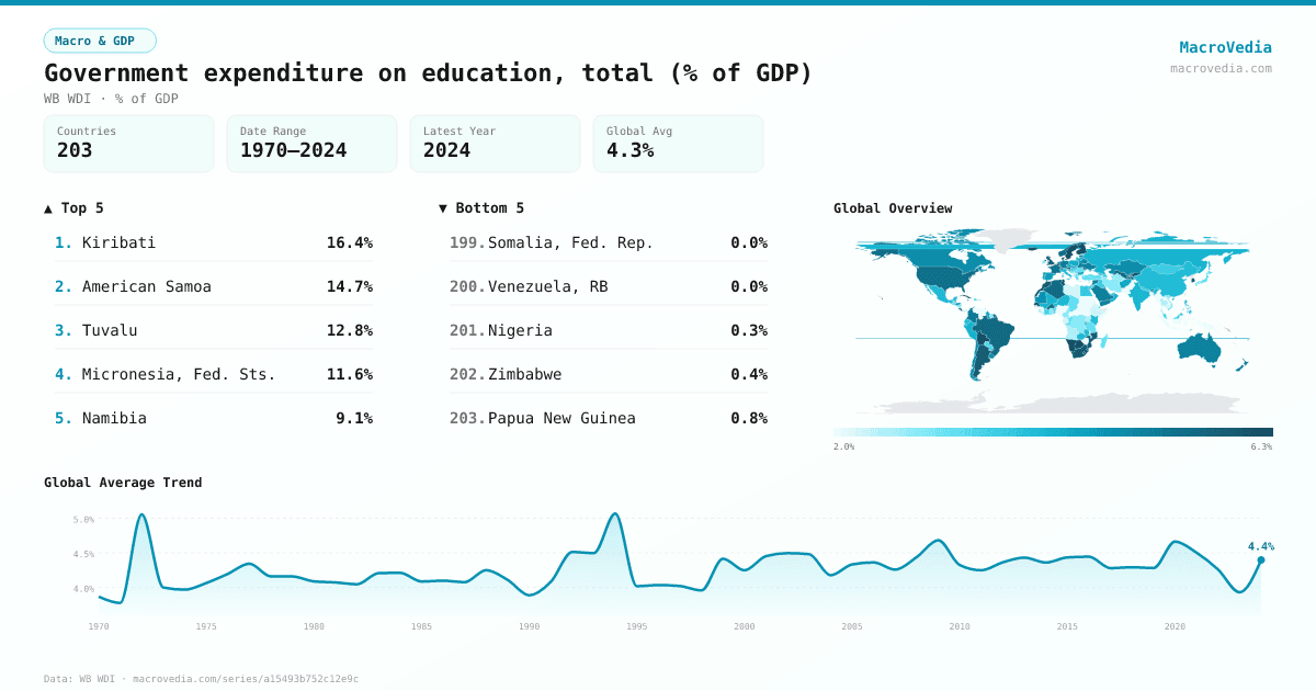 Macro & GDPWB WDIwb_wdi:SE.XPD.TOTL.GD.ZS•% of GDP•1970 → 2024•203 countries