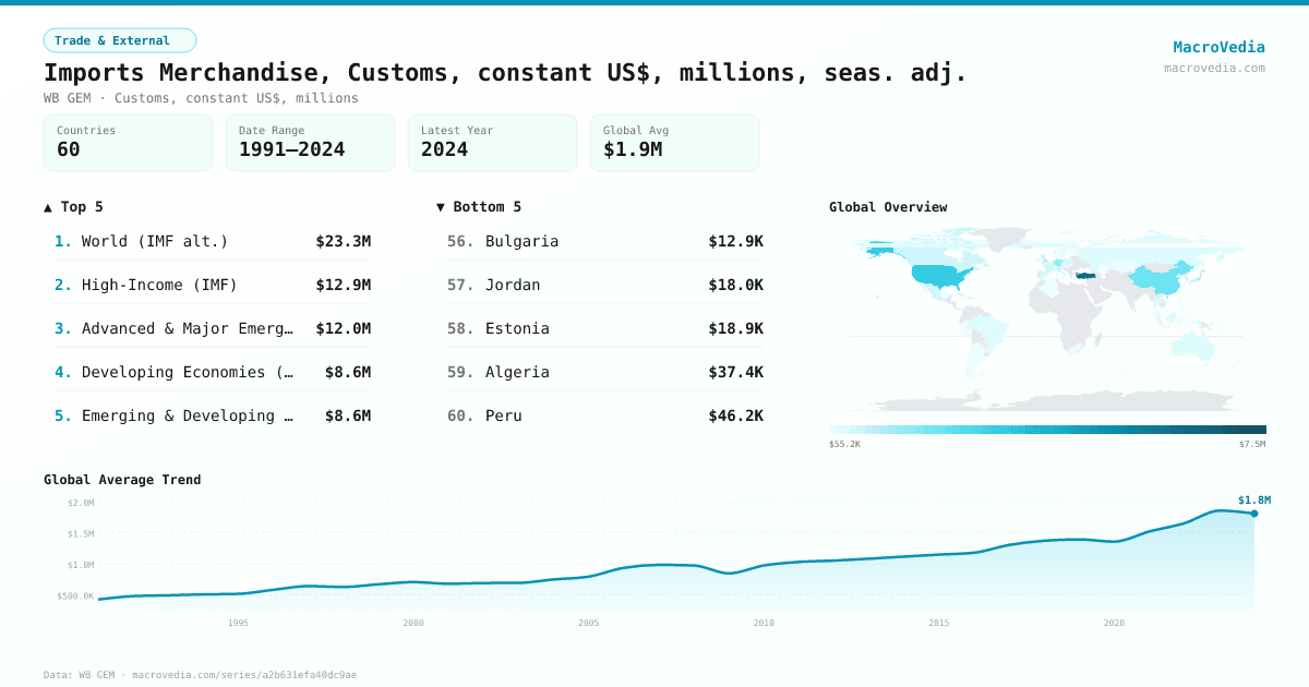 Trade & ExternalWB GEMwb_gem:DMGSRMRCHSAKD•Customs, constant US$, millions•1991 → 2024•46 countries