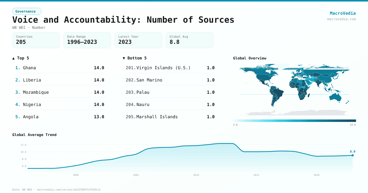 GovernanceWB WDIwb_wdi:VA.NO.SRC•Number•1996 → 2023•205 countries