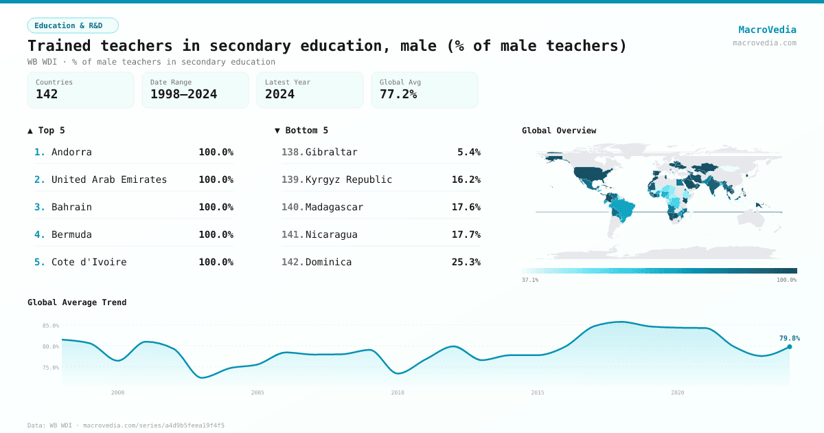 Education & R&DWB WDIwb_wdi:SE.SEC.TCAQ.MA.ZS•% of male teachers in secondary education•1998 → 2024•142 countries