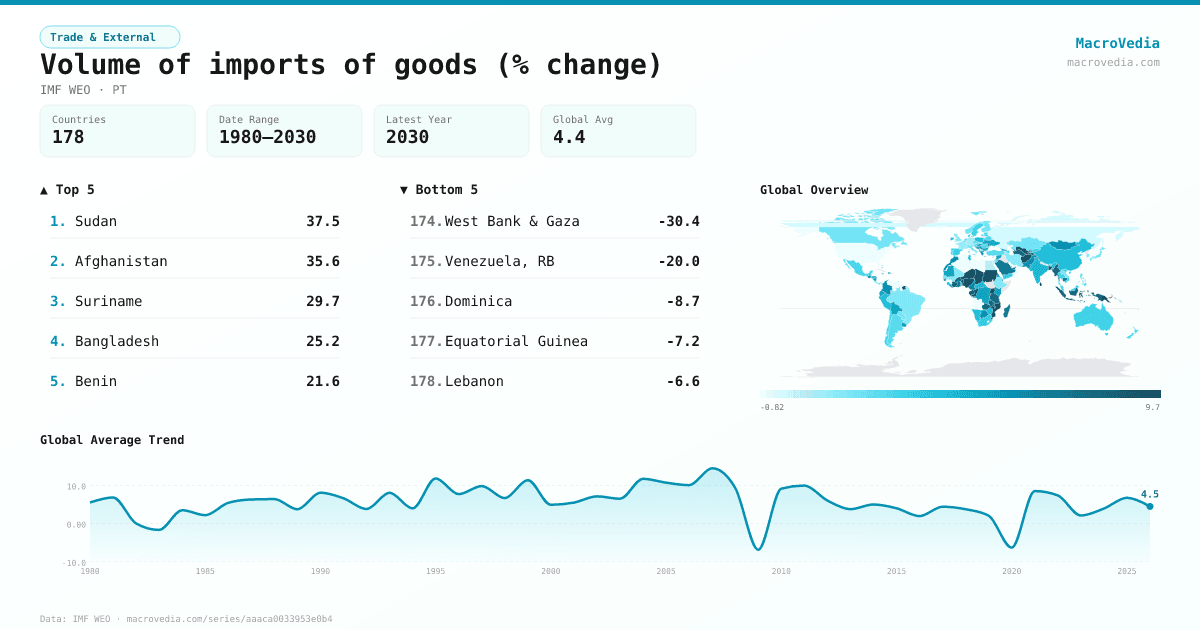 Volume of imports of goods (% change) by country