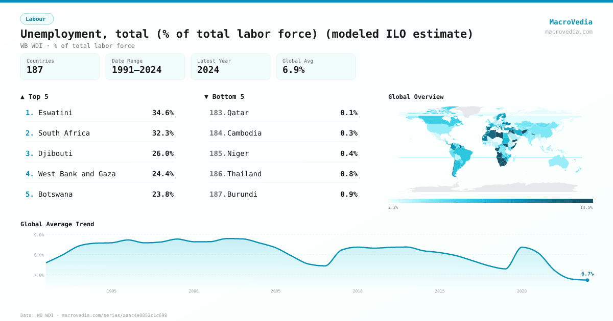 LabourWB WDIwb_wdi:SL.UEM.TOTL.ZS•% of total labor force•1991 → 2024•187 countries