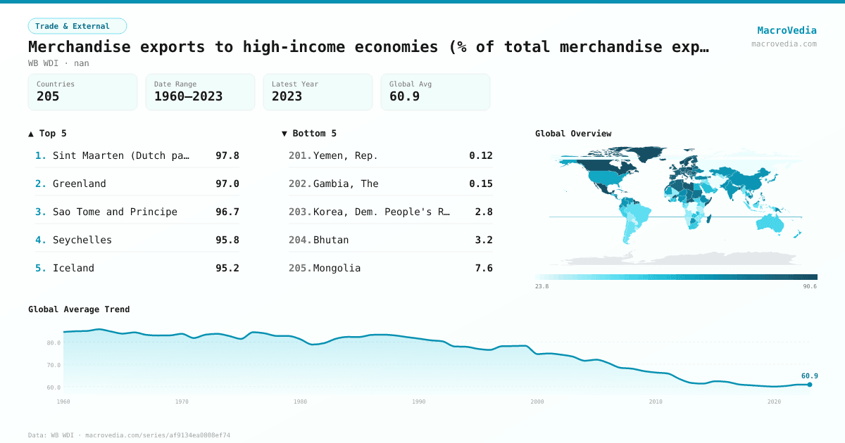 Merchandise exports to high-income economies (% of total merchandise exports) by country