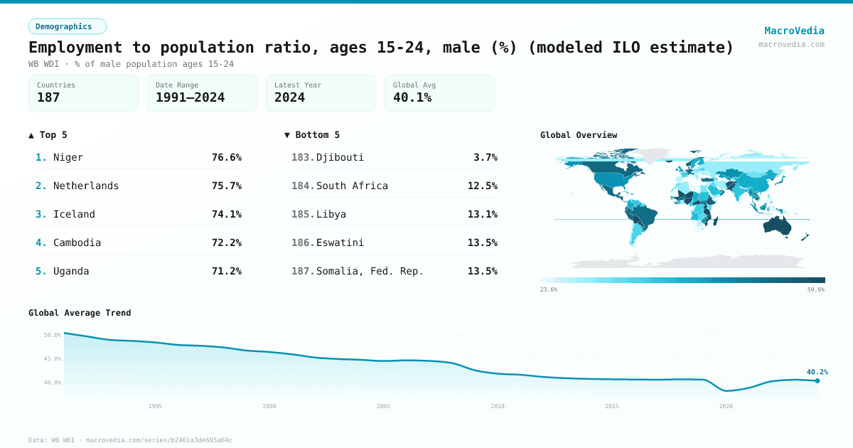 DemographicsWB WDIwb_wdi:SL.EMP.1524.SP.MA.ZS•% of male population ages 15-24•1991 → 2024•187 countries