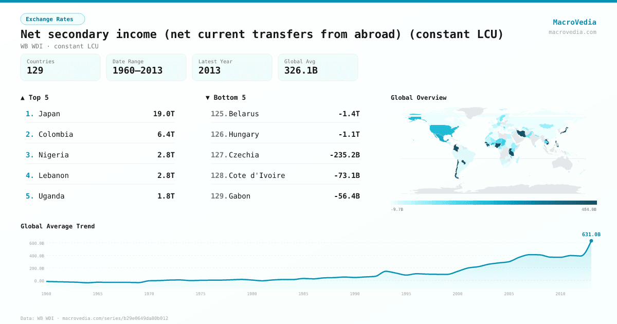 Net secondary income (net current transfers from abroad) (constant LCU) by country