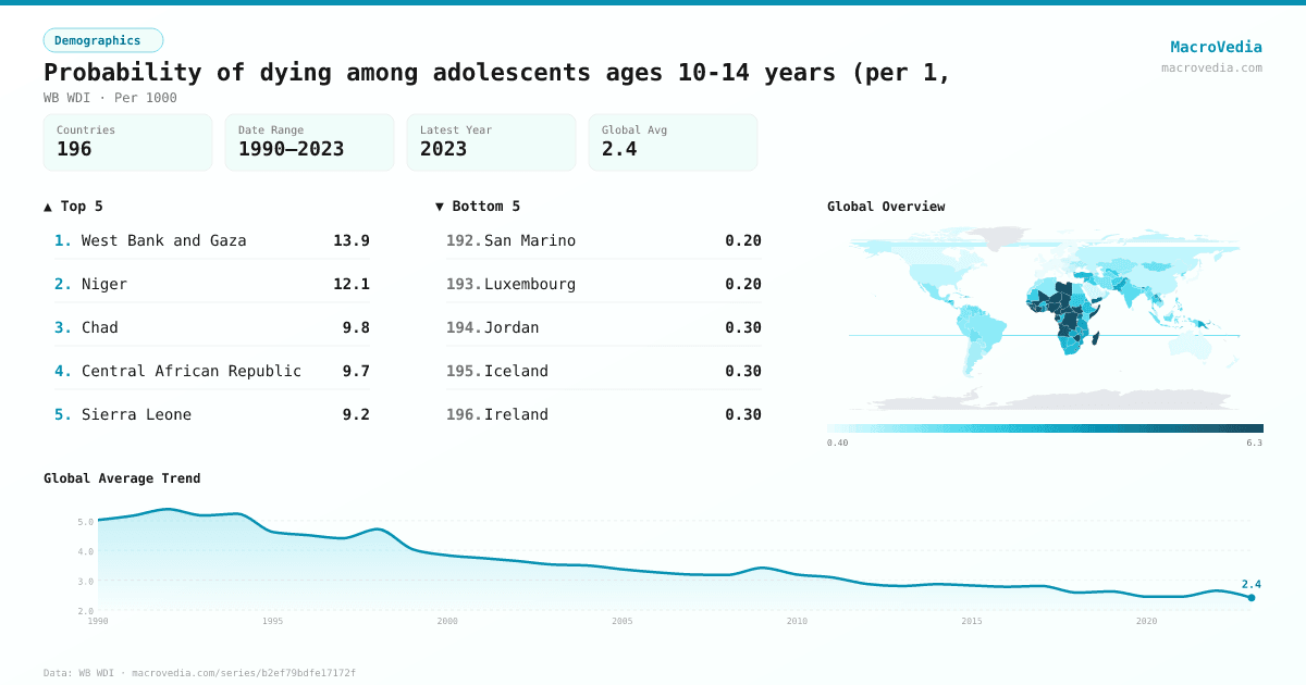 DemographicsWB WDIwb_wdi:SH.DYN.1014•Per 1000•1990 → 2023•196 countries