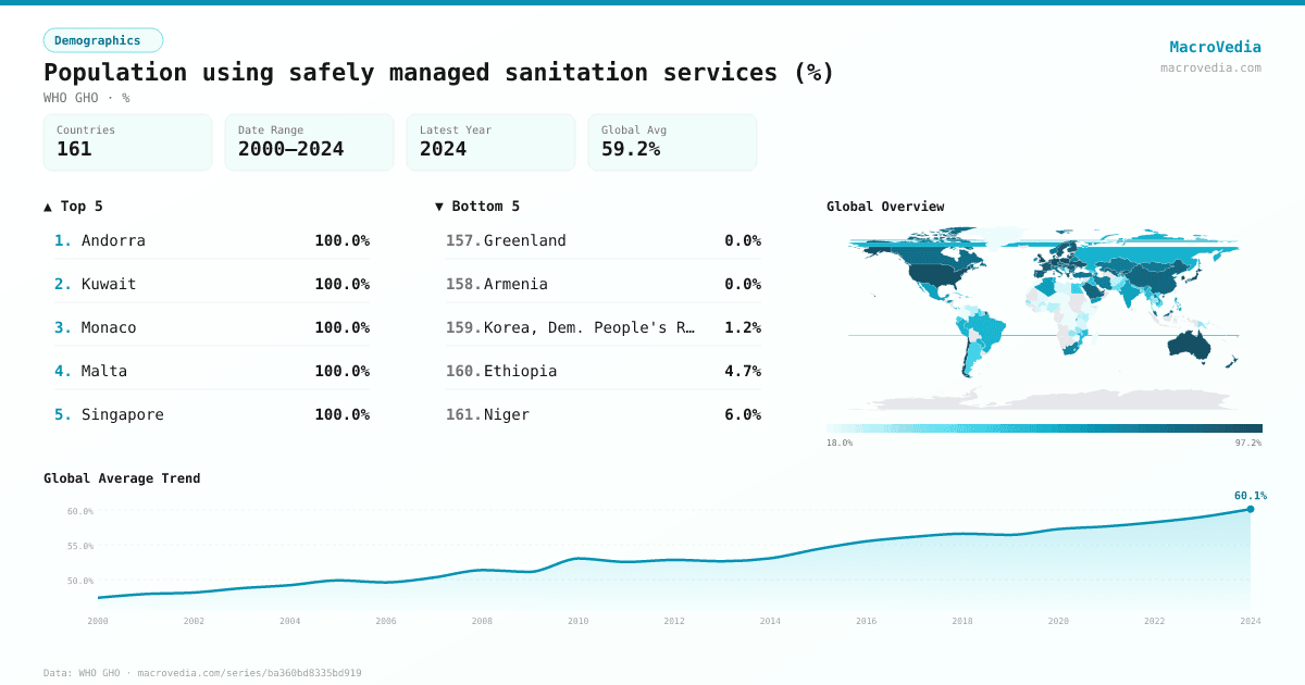 DemographicsWHO GHOwho_gho:WSH_SANITATION_SAFELY_MANAGED•%•2000 → 2024•157 countries