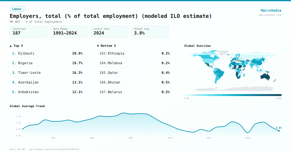 LabourWB WDIwb_wdi:SL.EMP.MPYR.ZS•% of total employment•1991 → 2024•187 countries