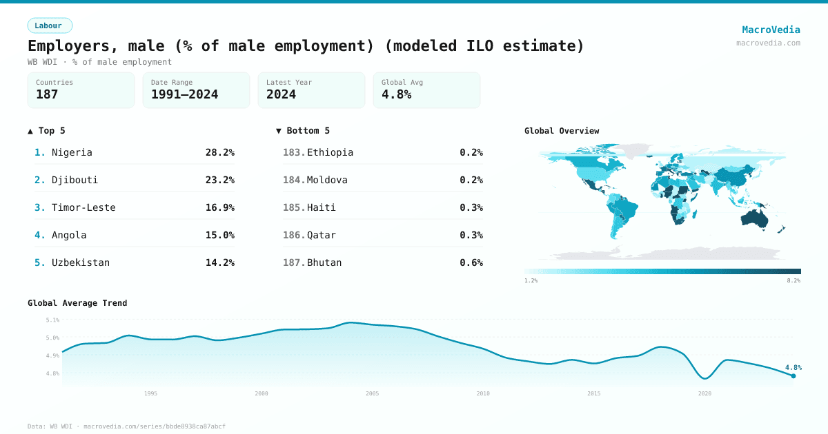 Employers, male (% of male employment) (modeled ILO estimate) by country