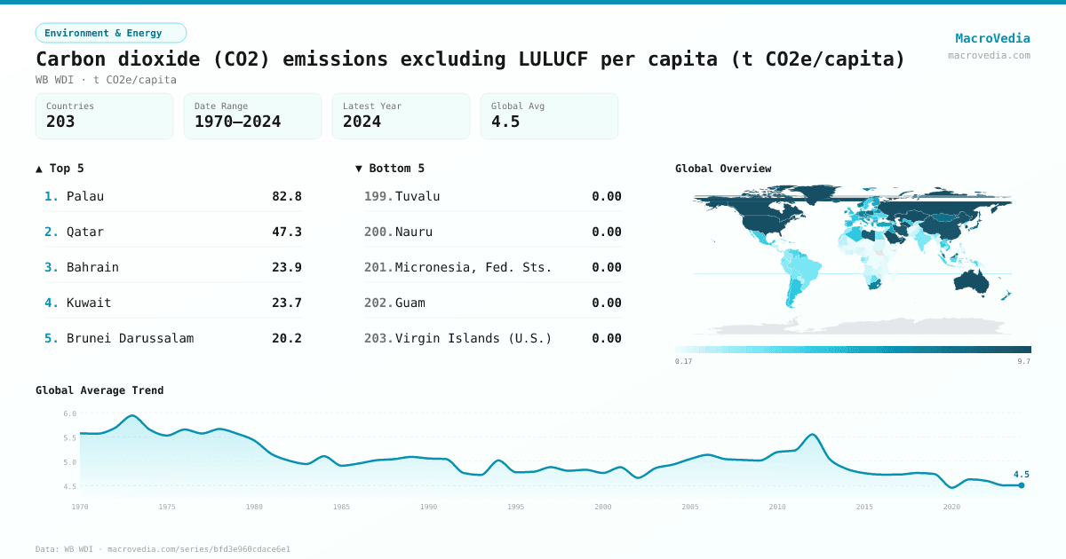| PalauPLW | 82.84 t CO2e/capita | 2024 | |