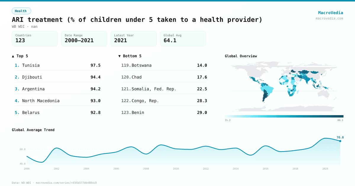 ARI treatment (% of children under 5 taken to a health provider) by country