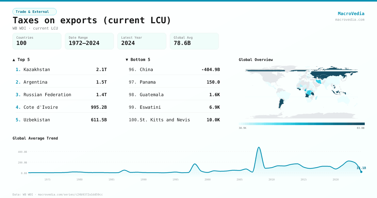 Trade & ExternalWB WDIwb_wdi:GC.TAX.EXPT.CN•current LCU•1972 → 2024•100 countries