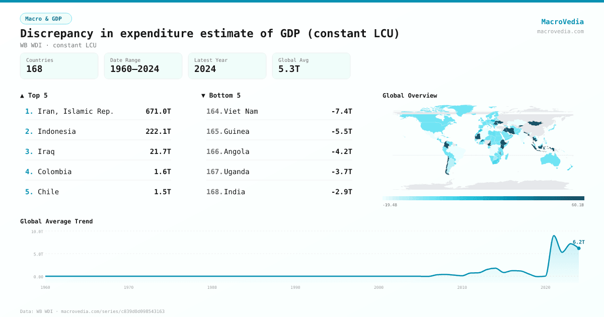 Discrepancy in expenditure estimate of GDP (constant LCU) by country