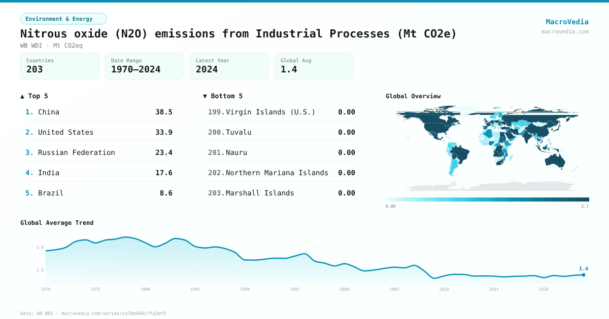 Environment & EnergyWB WDIwb_wdi:EN.GHG.N2O.IP.MT.CE.AR5•Mt CO2eq•1970 → 2024•203 countries
