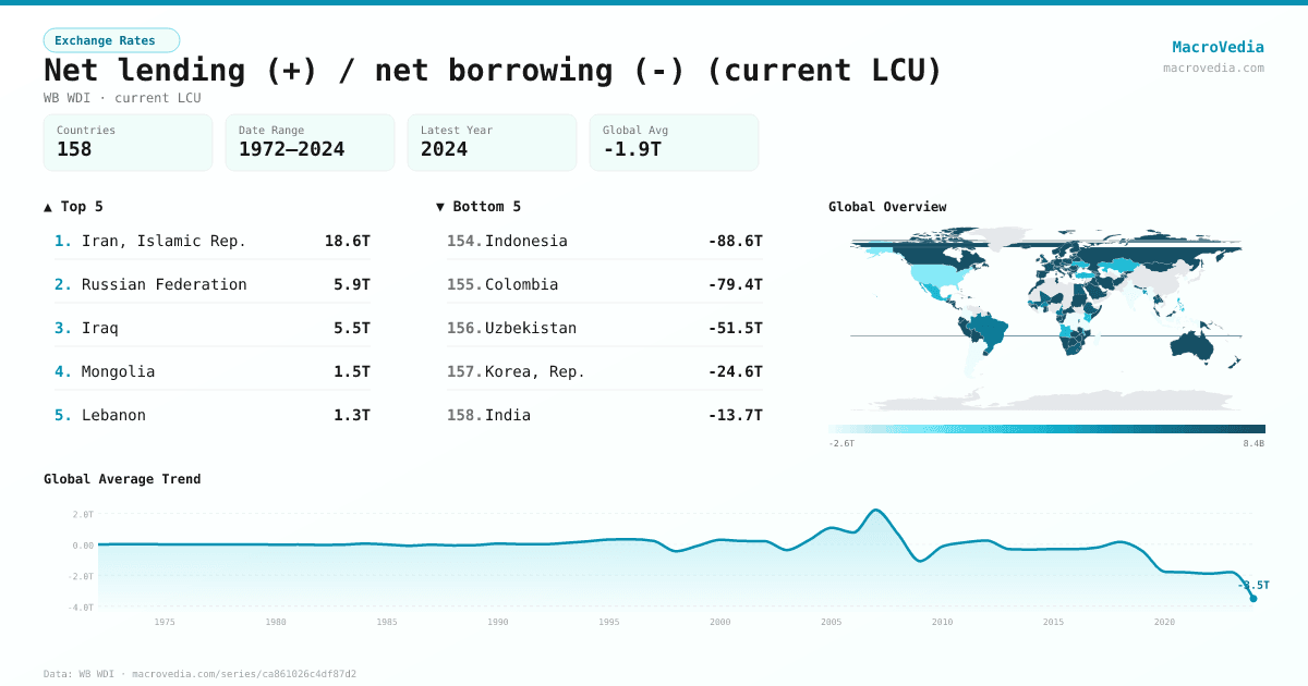 Net lending (+) / net borrowing (-) (current LCU) by country