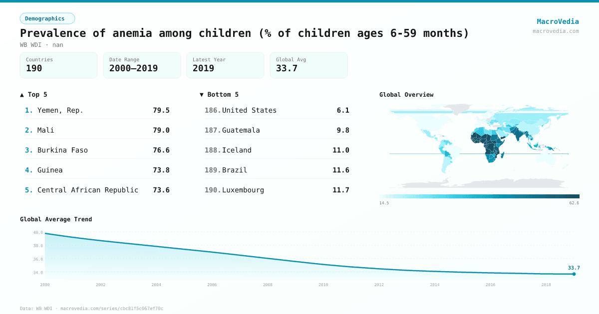Prevalence of anemia among children (% of children ages 6-59 months) by country