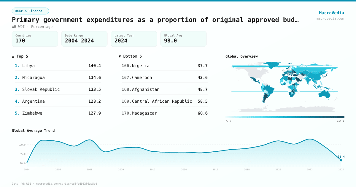 Primary government expenditures as a proportion of original approved budget (%) by country