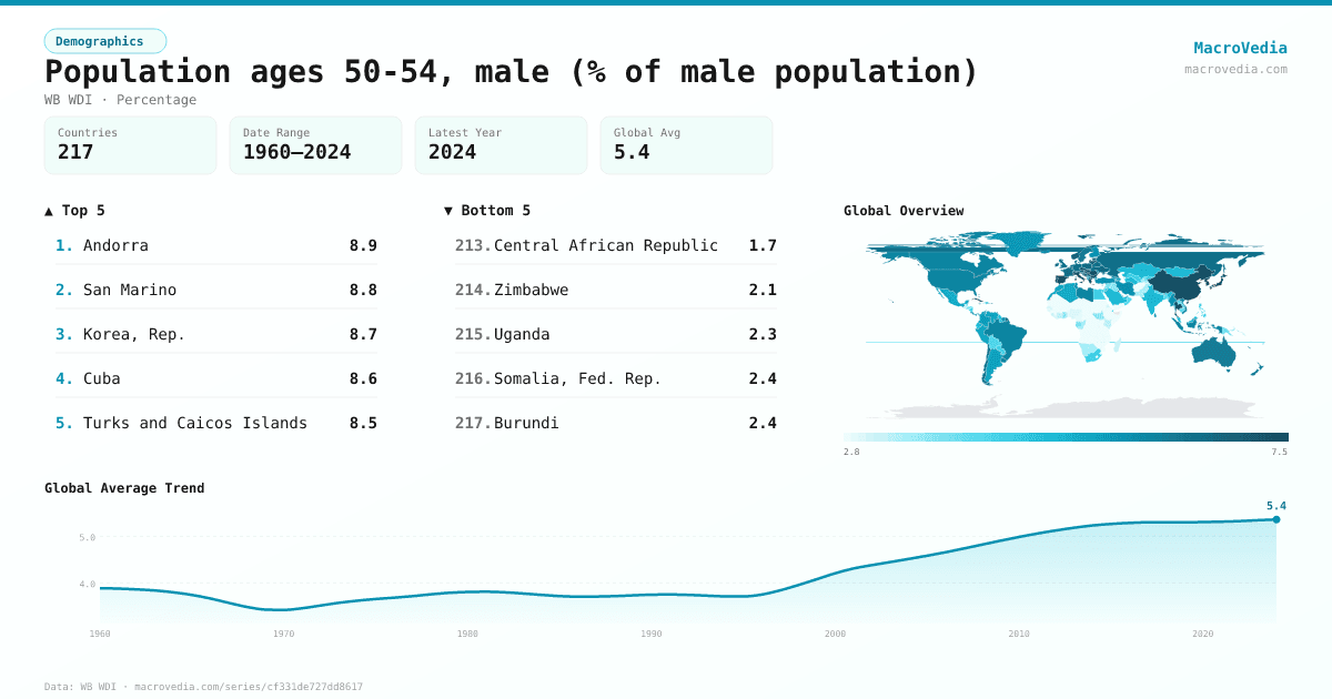 DemographicsWB WDIwb_wdi:SP.POP.5054.MA.5Y•Percentage•1960 → 2024•217 countries