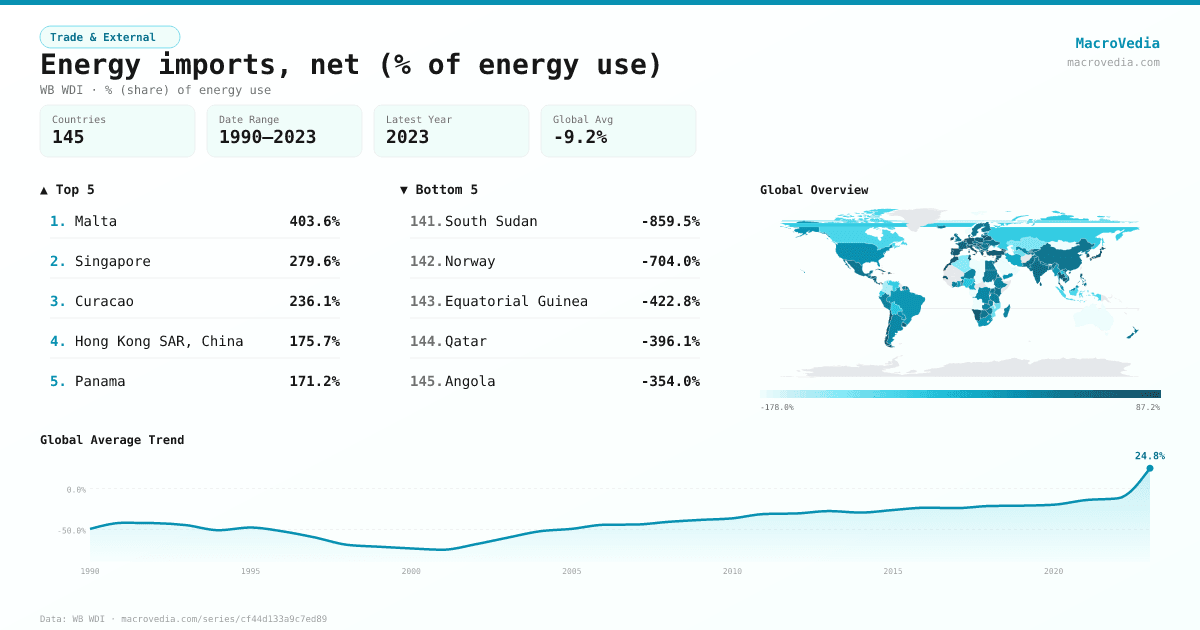 Trade & ExternalWB WDIwb_wdi:EG.IMP.CONS.ZS•% (share) of energy use•1990 → 2023•145 countries