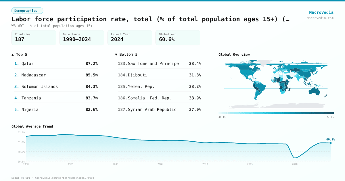 DemographicsWB WDIwb_wdi:SL.TLF.CACT.ZS•% of total population ages 15+•1990 → 2024•187 countries