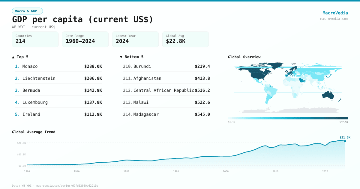 Macro & GDPWB WDIwb_wdi:NY.GDP.PCAP.CD•current US$•1960 → 2024•214 countries