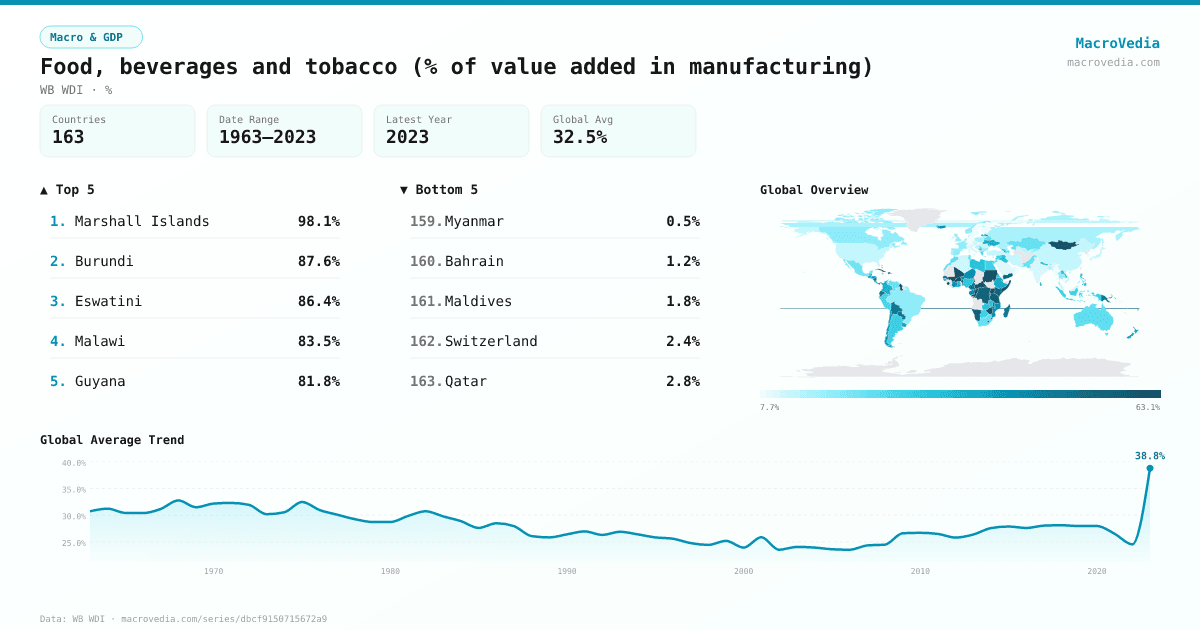 Food, beverages and tobacco (% of value added in manufacturing) by country