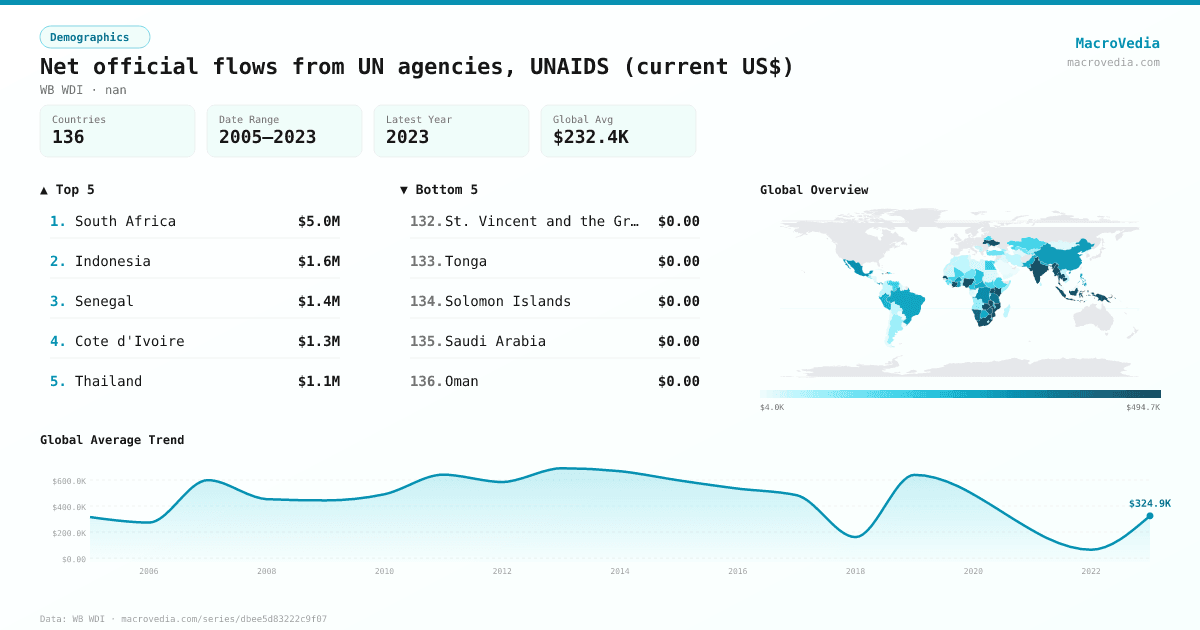 Net official flows from UN agencies, UNAIDS (current US$) by country