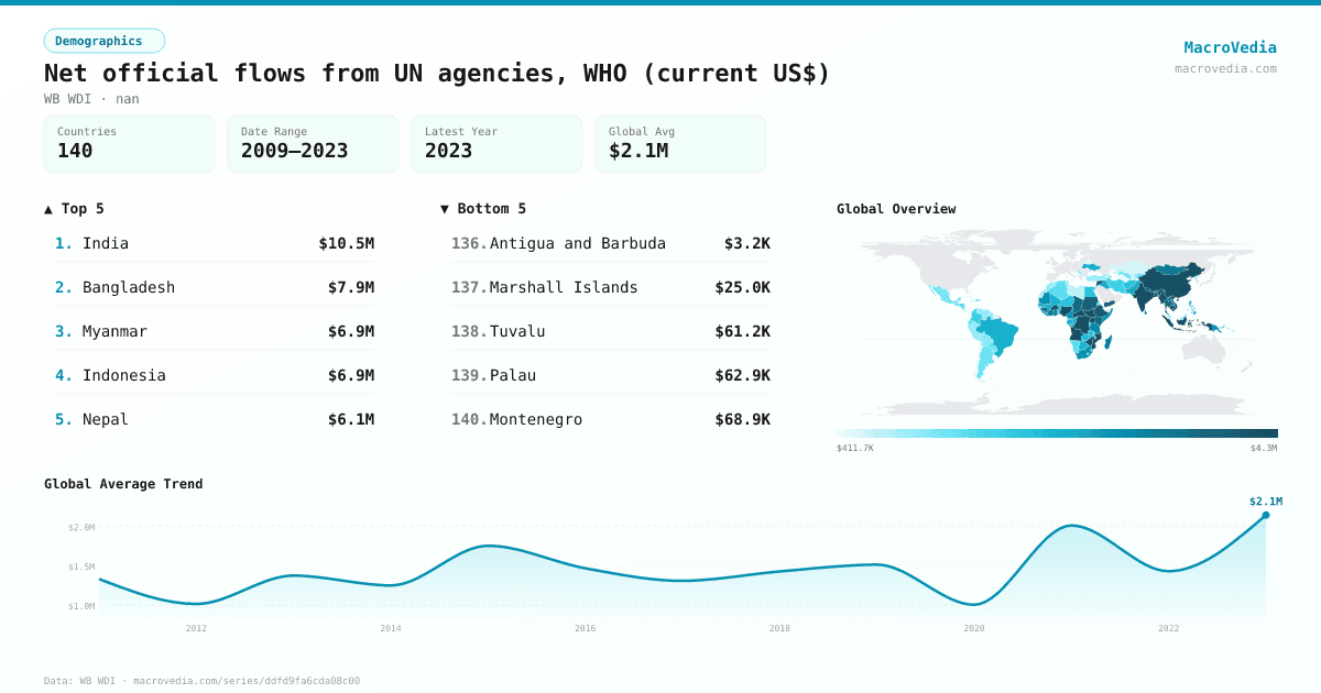 Net official flows from UN agencies, WHO (current US$) by country
