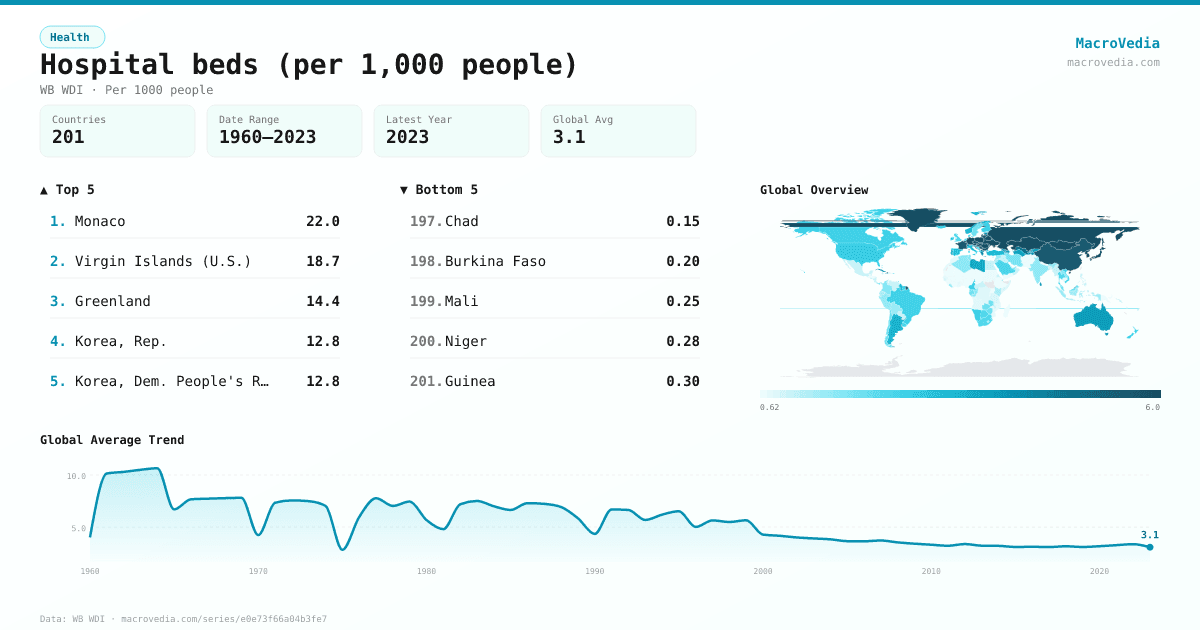 HealthWB WDIwb_wdi:SH.MED.BEDS.ZS•Per 1000 people•1960 → 2023•201 countries