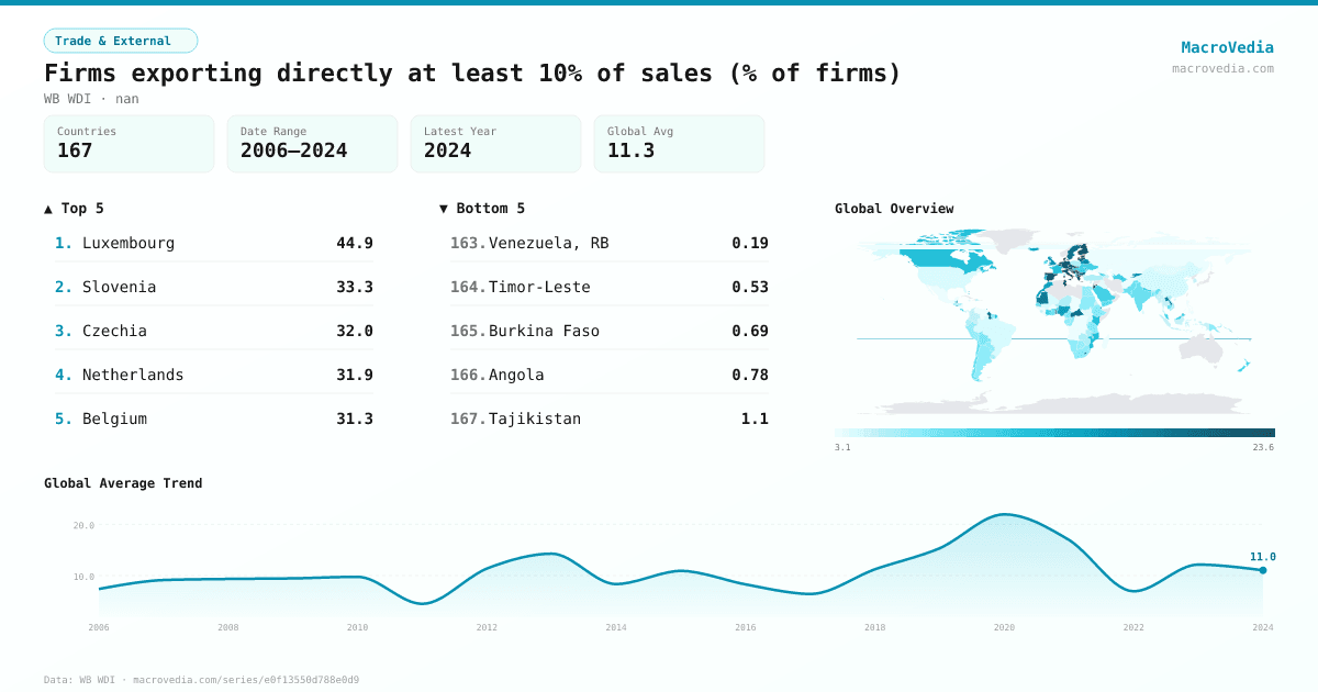 Trade & ExternalWB WDIwb_wdi:IC.FRM.EXS.ZS•nan•2006 → 2024•167 countries
