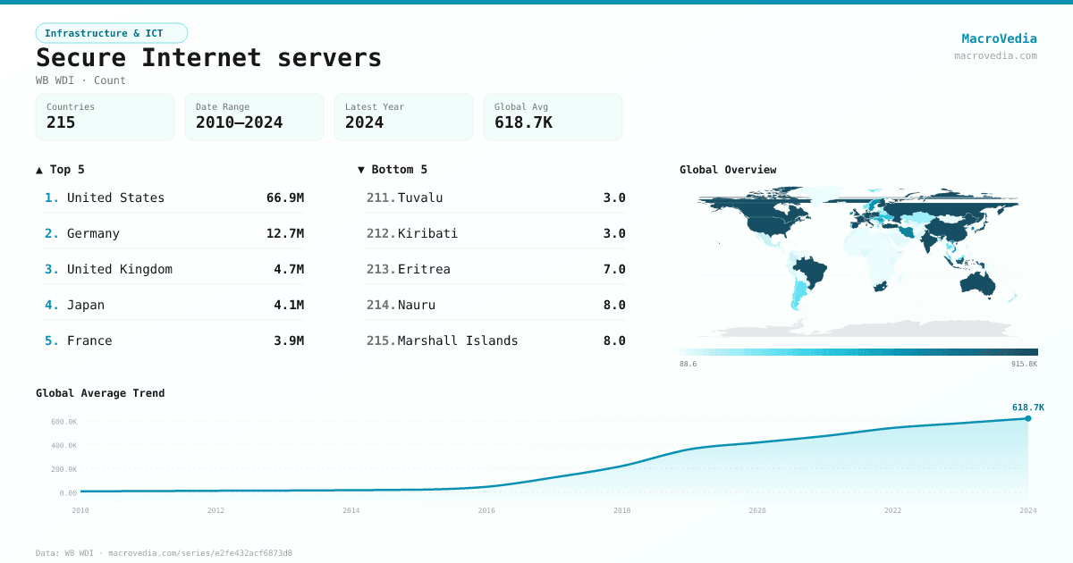 Infrastructure & ICTWB WDIwb_wdi:IT.NET.SECR•Count•2010 → 2024•215 countries