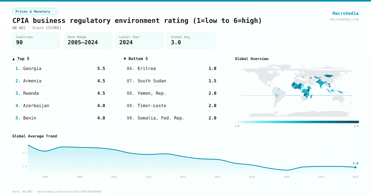 Prices & MonetaryWB WDIwb_wdi:IQ.CPA.BREG.XQ•Score [SCORE]•2005 → 2024•90 countries