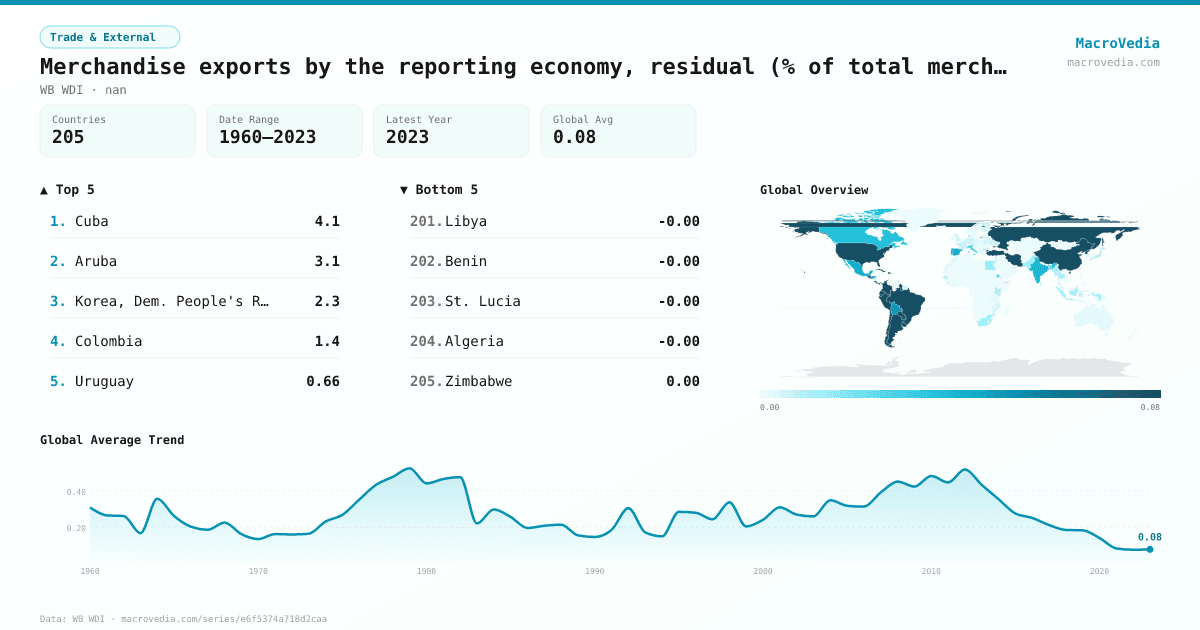 Merchandise exports by the reporting economy, residual (% of total merchandise exports) by country