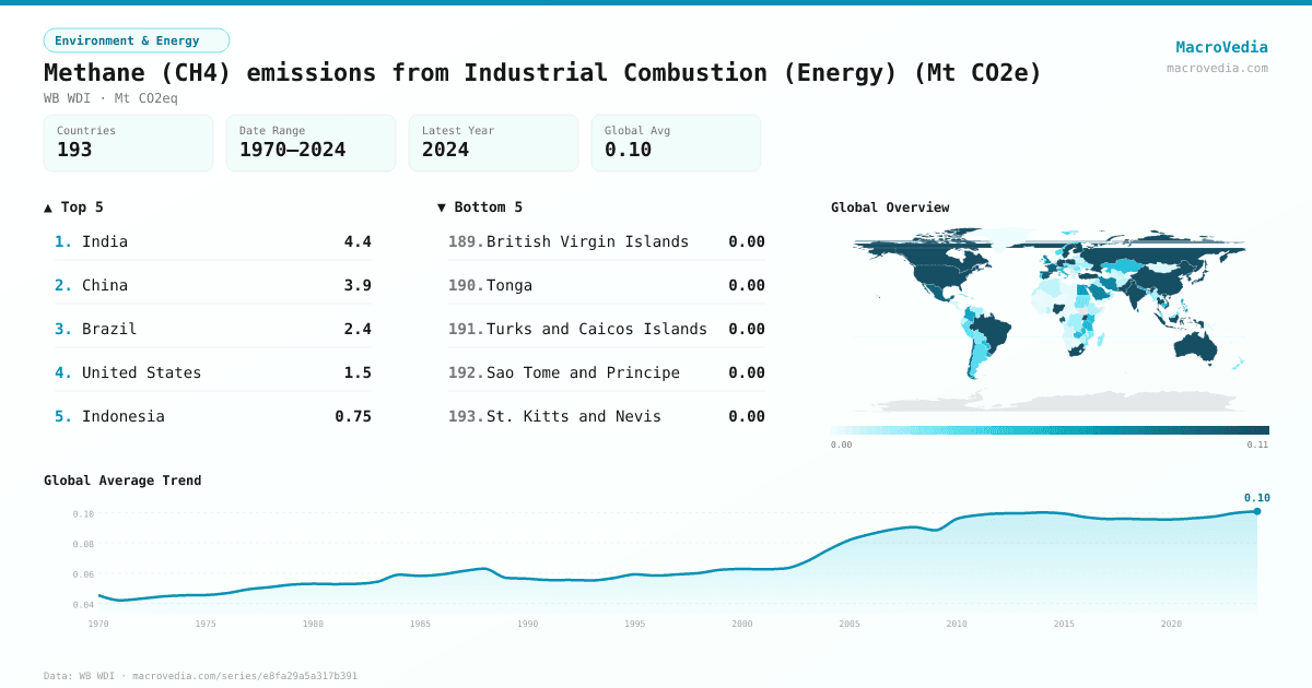 Environment & EnergyWB WDIwb_wdi:EN.GHG.CH4.IC.MT.CE.AR5•Mt CO2eq•1970 → 2024•193 countries