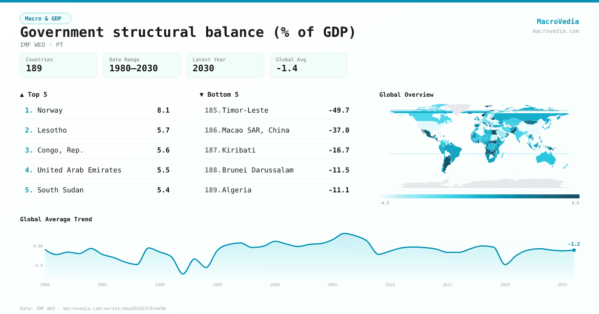 Macro & GDPIMF WEOimf_weo:GGXONLB_NGDP•PT•1980 → 2026•188 countries