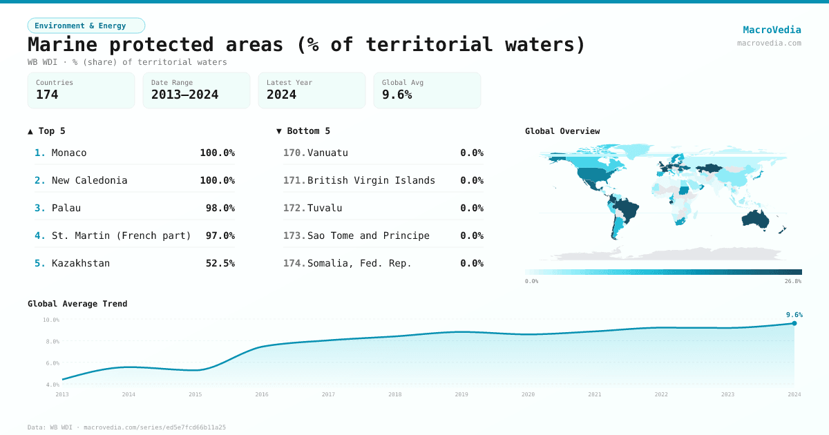 Environment & EnergyWB WDIwb_wdi:ER.MRN.PTMR.ZS•% (share) of territorial waters•2013 → 2024•174 countries