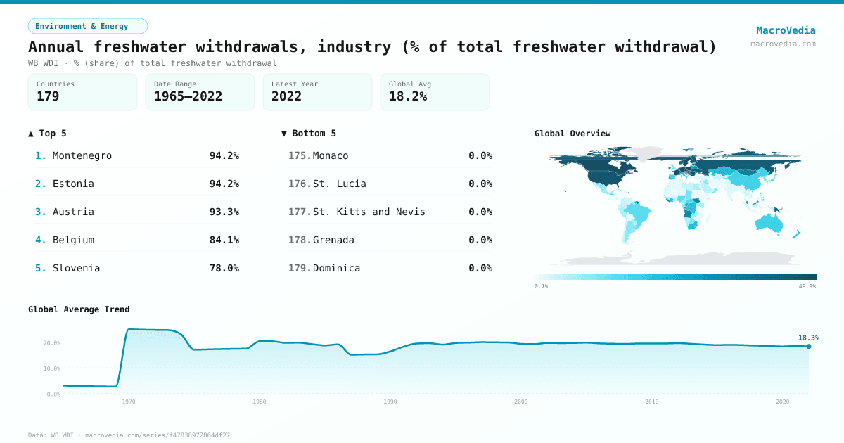Environment & EnergyWB WDIwb_wdi:ER.H2O.FWIN.ZS•% (share) of total freshwater withdrawal•1965 → 2022•179 countries