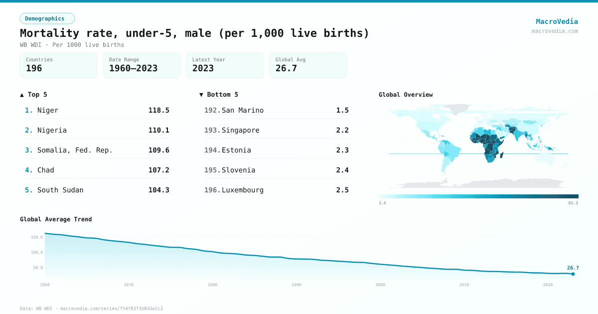 DemographicsWB WDIwb_wdi:SH.DYN.MORT.MA•Per 1000 live births•1960 → 2023•196 countries