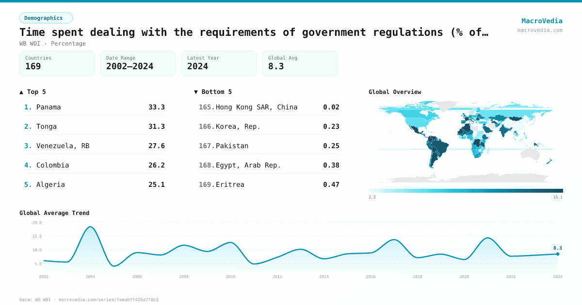 DemographicsWB WDIwb_wdi:IC.GOV.DURS.ZS•Percentage•2002 → 2024•169 countries
