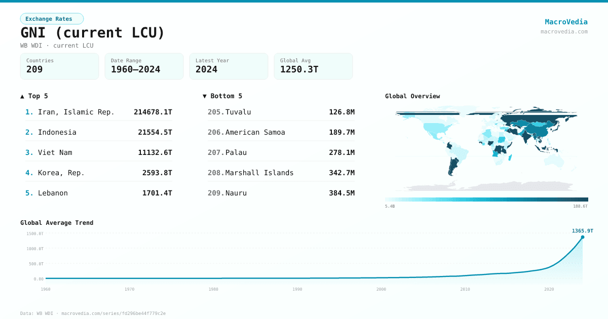 Exchange RatesWB WDIwb_wdi:NY.GNP.MKTP.CN•current LCU•1960 → 2024•209 countries