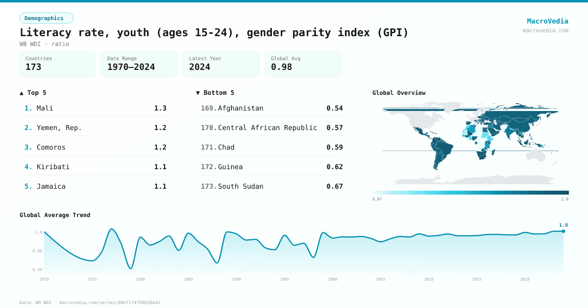 DemographicsWB WDIwb_wdi:SE.ADT.1524.LT.FM.ZS•ratio•1970 → 2024•173 countries