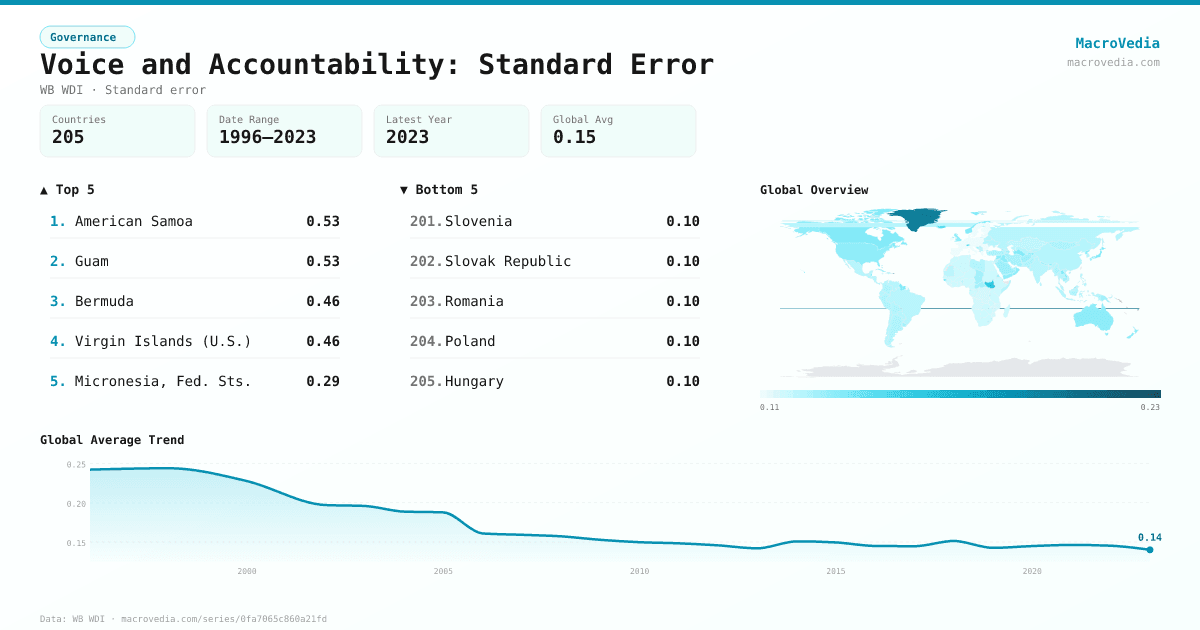 GovernanceWB WDIwb_wdi:VA.STD.ERR•Standard error•1996 → 2023•205 countries