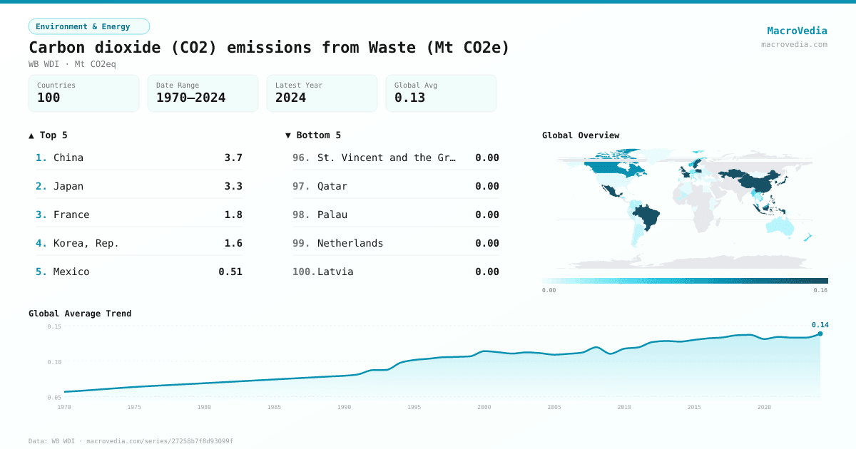 Carbon dioxide (CO2) emissions from Waste (Mt CO2e) by country