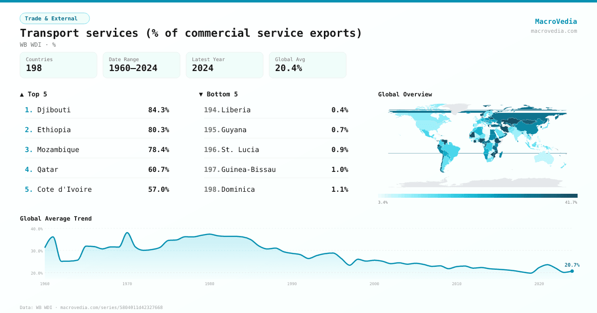 Trade & ExternalWB WDIwb_wdi:TX.VAL.TRAN.ZS.WT•%•1960 → 2024•198 countries